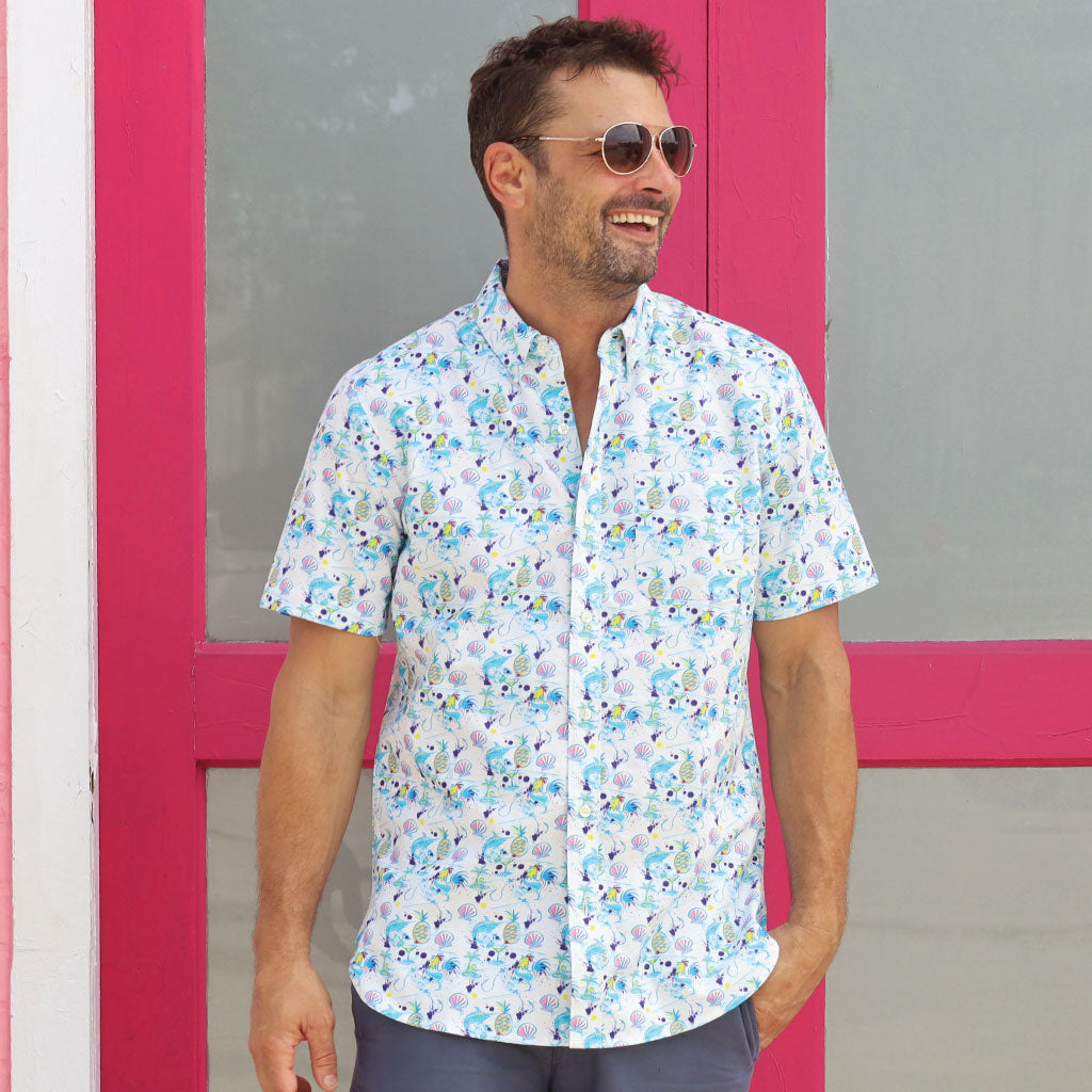 When you think catamaran, do stability, comfort, and fun come to mind? Those same words can be used to describe our Catamaran Camp Shirt. Microprint patterns make a carefree statement on a sturdy, yet soft, cotton fabric.